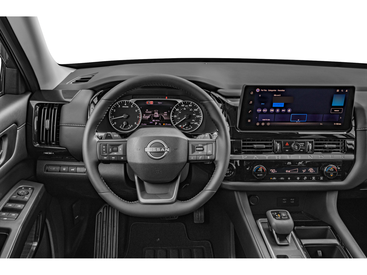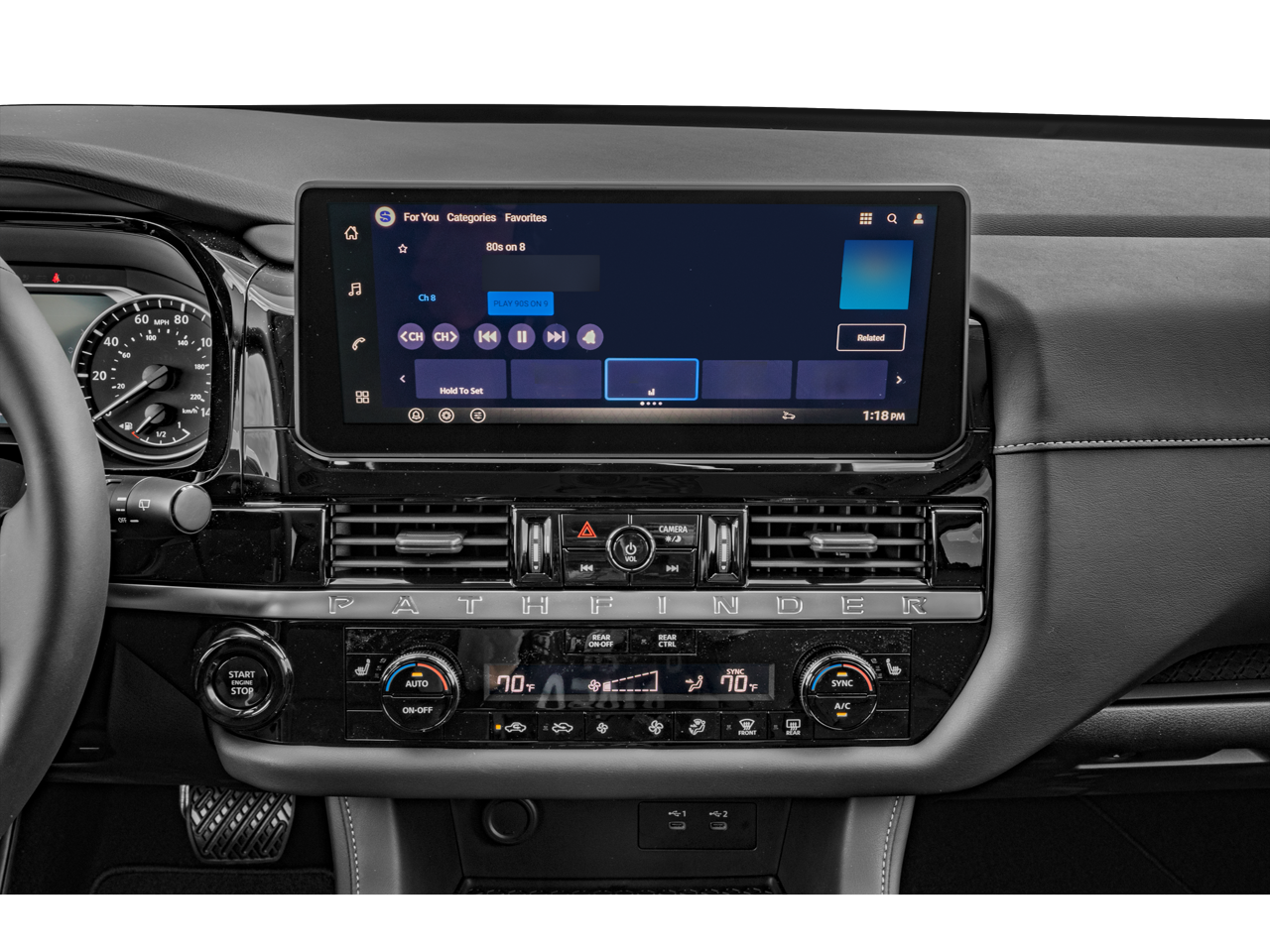 • Radio: AM/FM Audio System w/NissanConnect -inc: 6 speakers, 5G Wi-Fi hotspot, wireless Apple CarPlay and Android Auto, 12.3" center touch-screen display, SiriusXM satellite radio, 2 front USB connection (1 type C charge and data ports), Bluetooth® hands-free phone system, streaming audio and messaging and hands-free text messaging assistant